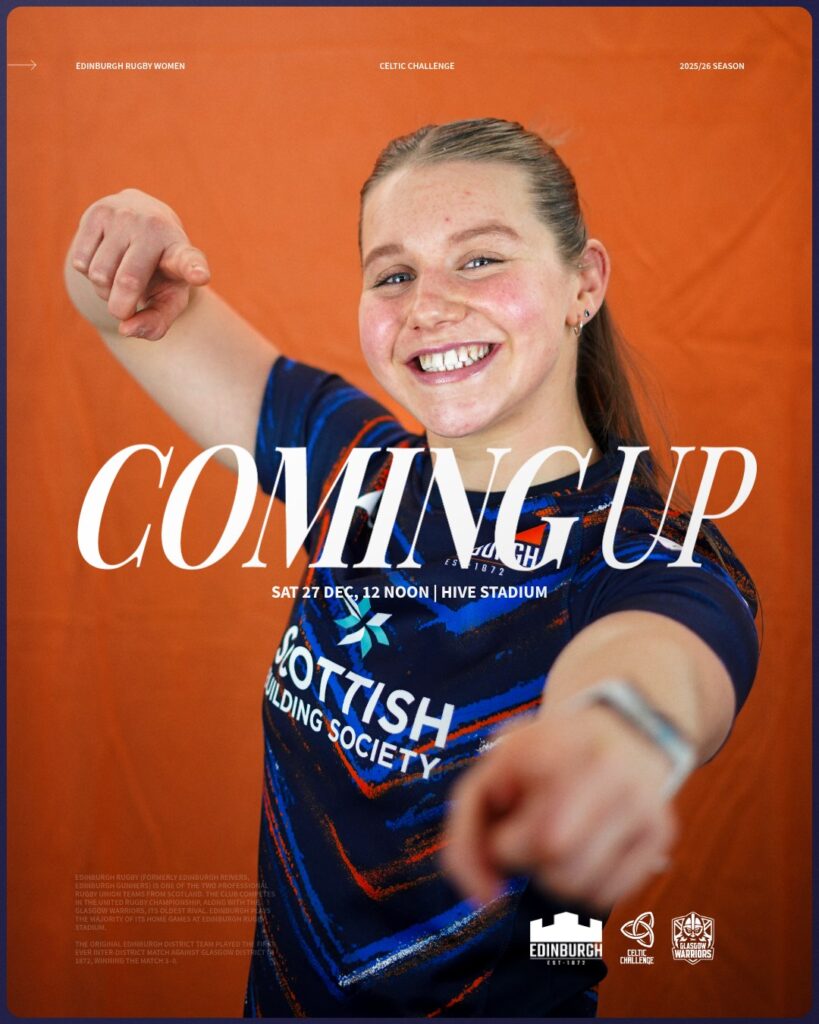 The action commences at midday at Hive Stadium, where Edinburgh Rugby’s women’s team welcome Glasgow Warriors women in Round 2 of the Celtic Challenge.