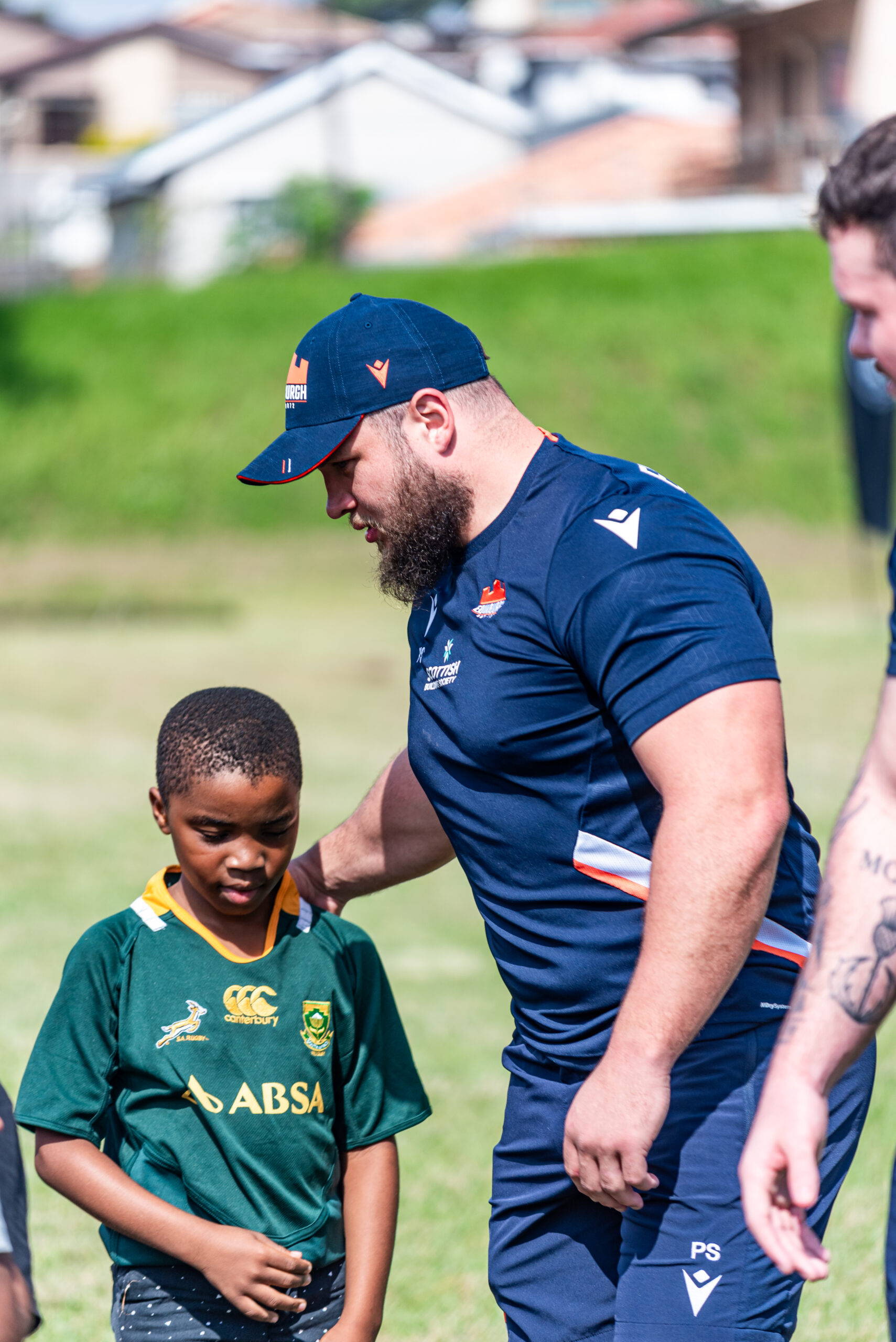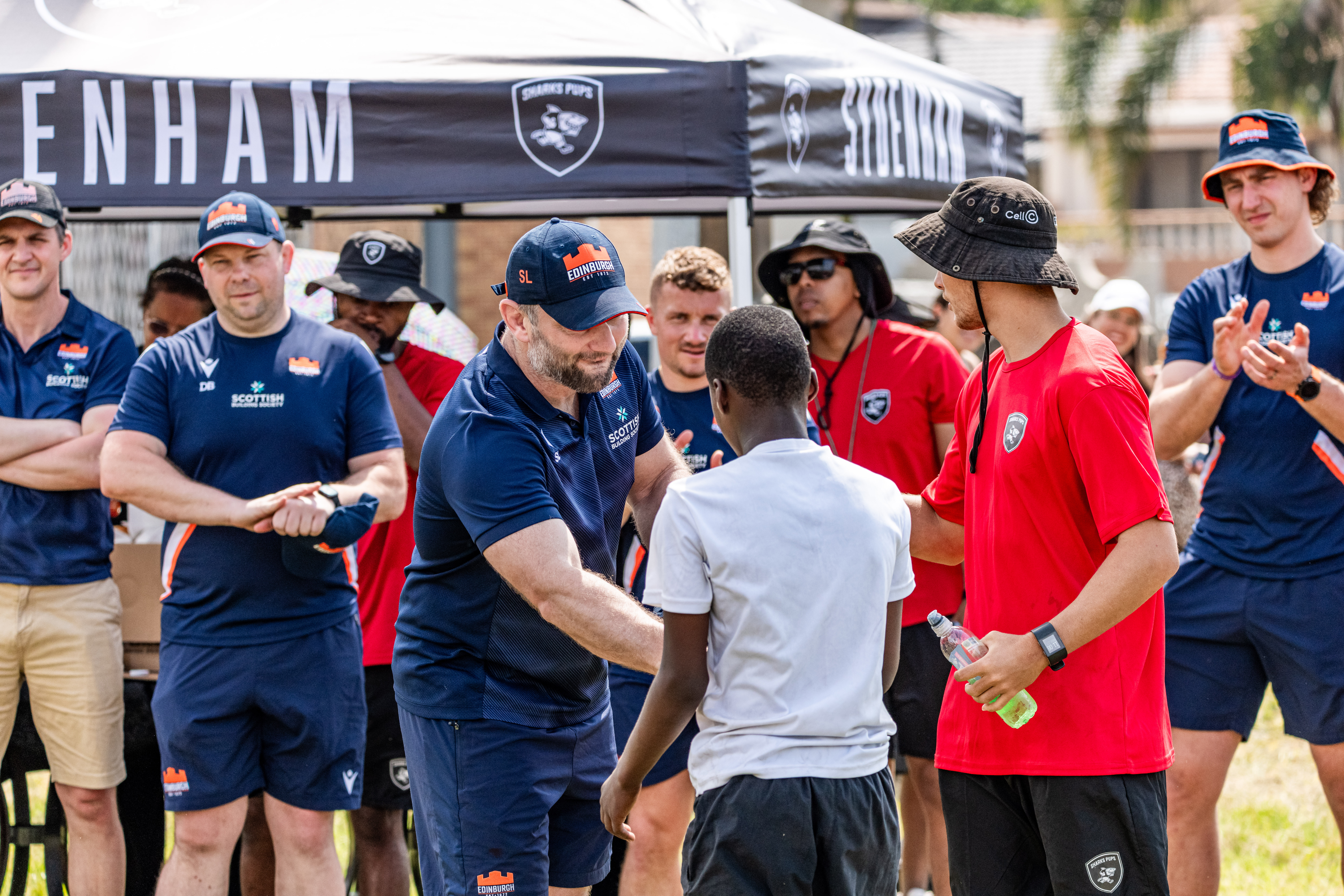 Ahead of Edinburgh's BKT URC Round 13 fixture against the Hollywoodbets Sharks, coaches and players from the capial side took part in a coaching clinic in Sydenham, Durban.