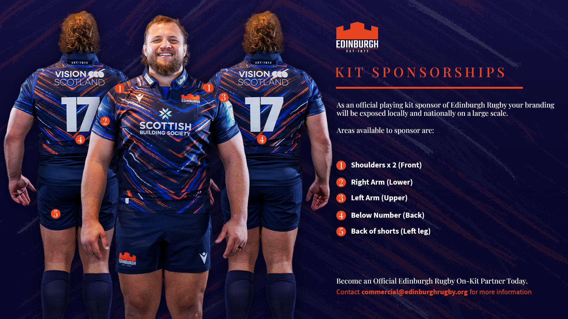 On-kit sponsorship opportunities with Edinburgh Rugby