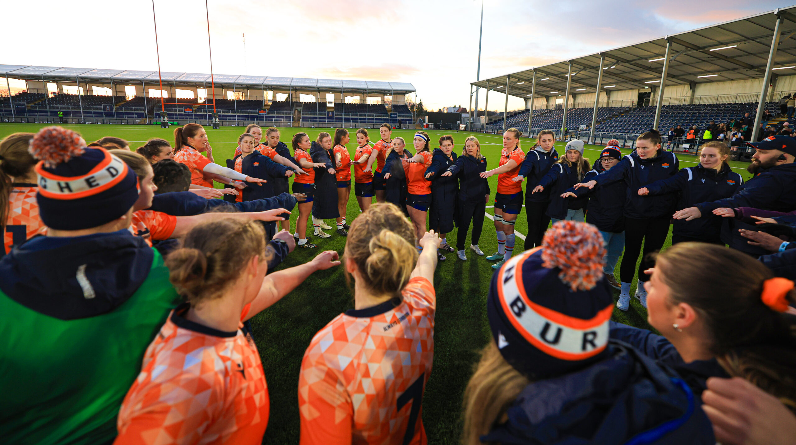 EDINBURGH, SCOTLAND - JANUARY 06: Edinburgh players and staff at full time during a Celtic Challenge match between Edinburgh Rugby Women and Wolfhounds at Hive Stadium, on January 06, 2024, in Edinburgh, Scotland. (Photo by Ewan Bootman / SNS Group) The experienced Irish outfit showed their class to come away with a 27-17 win infront of 903 fans at Hive Stadium, with the driving maul in particular causing problems for the capital club.
